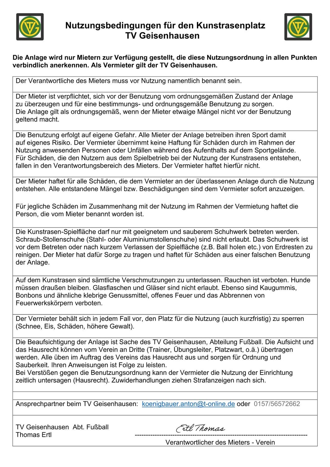 Belegungsplan Vereinsgelände
